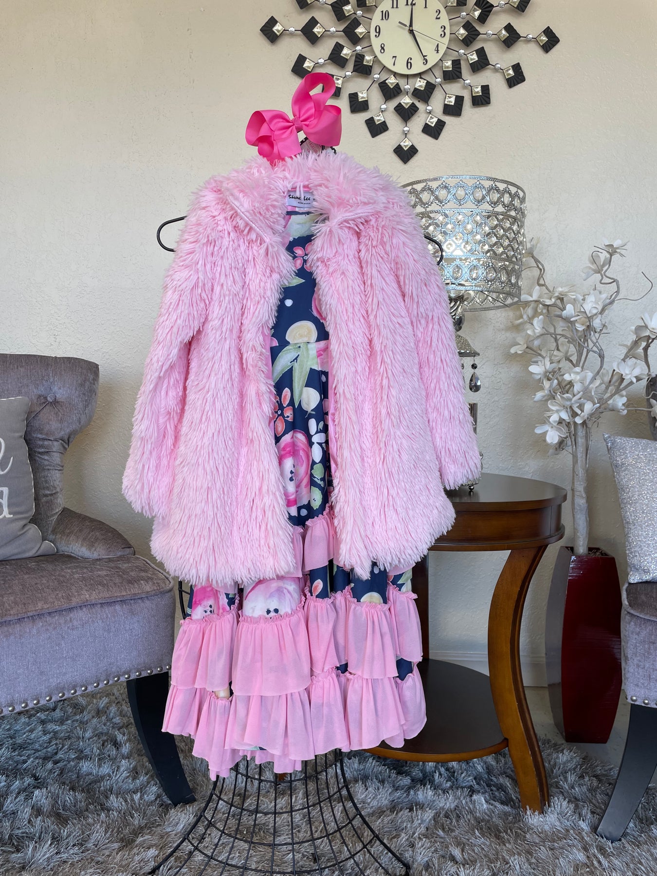 Girl’s perfect Cotton Candy Pink Shaggy Faux Fur swing coat!! Mid Length. Lined. An adorable coat for that special little girl!! Easy care … just wash and dry.