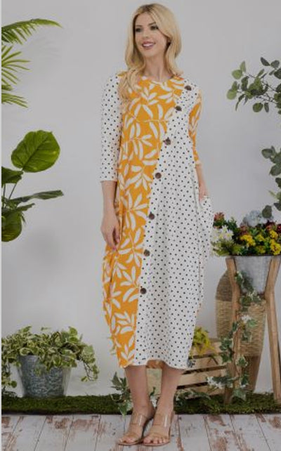 Willa Mustard & Ivory Polka Dot Dress