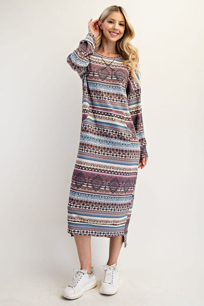 Amelia Aztec Print Sweatshirt Dress