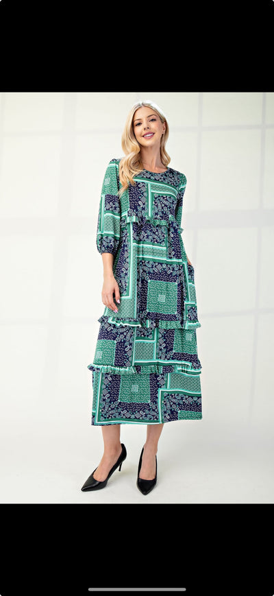 Hunter Green Floral Tiered Dress