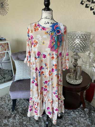 Floral Ruffle Hem High Low Dress