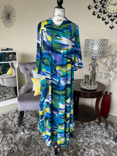 Abstract Swirl Blue Green Dress
