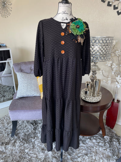 Black Honeycomb Tiered Dress (Plus)